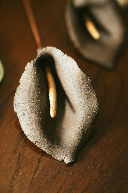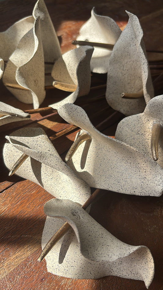 Beautiful handmade flower-shaped candle holder, crafted petal by petal in stoneware. Pearl...