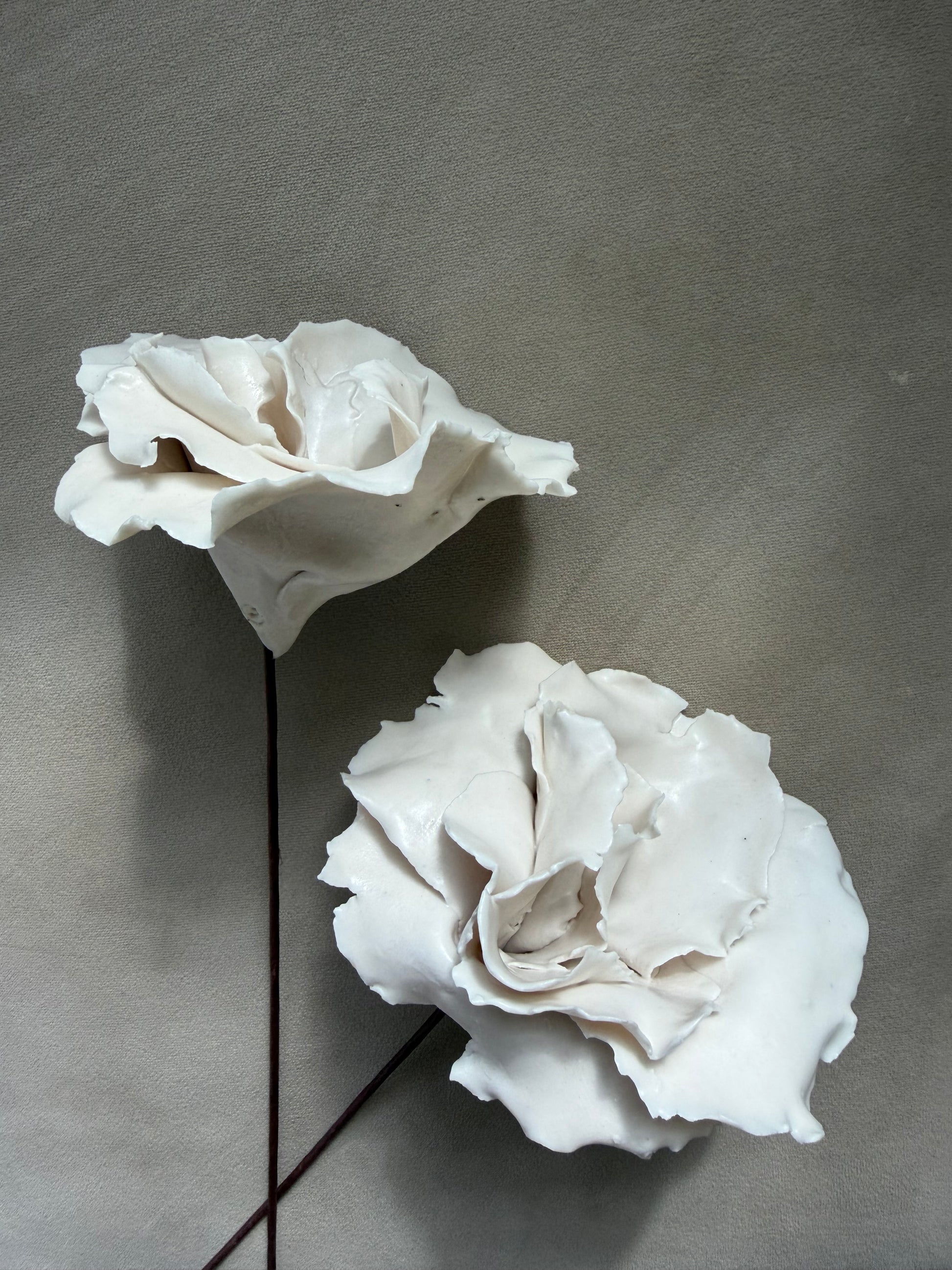 Hermosas y delicadas rosas hechas a mano en porcelana.