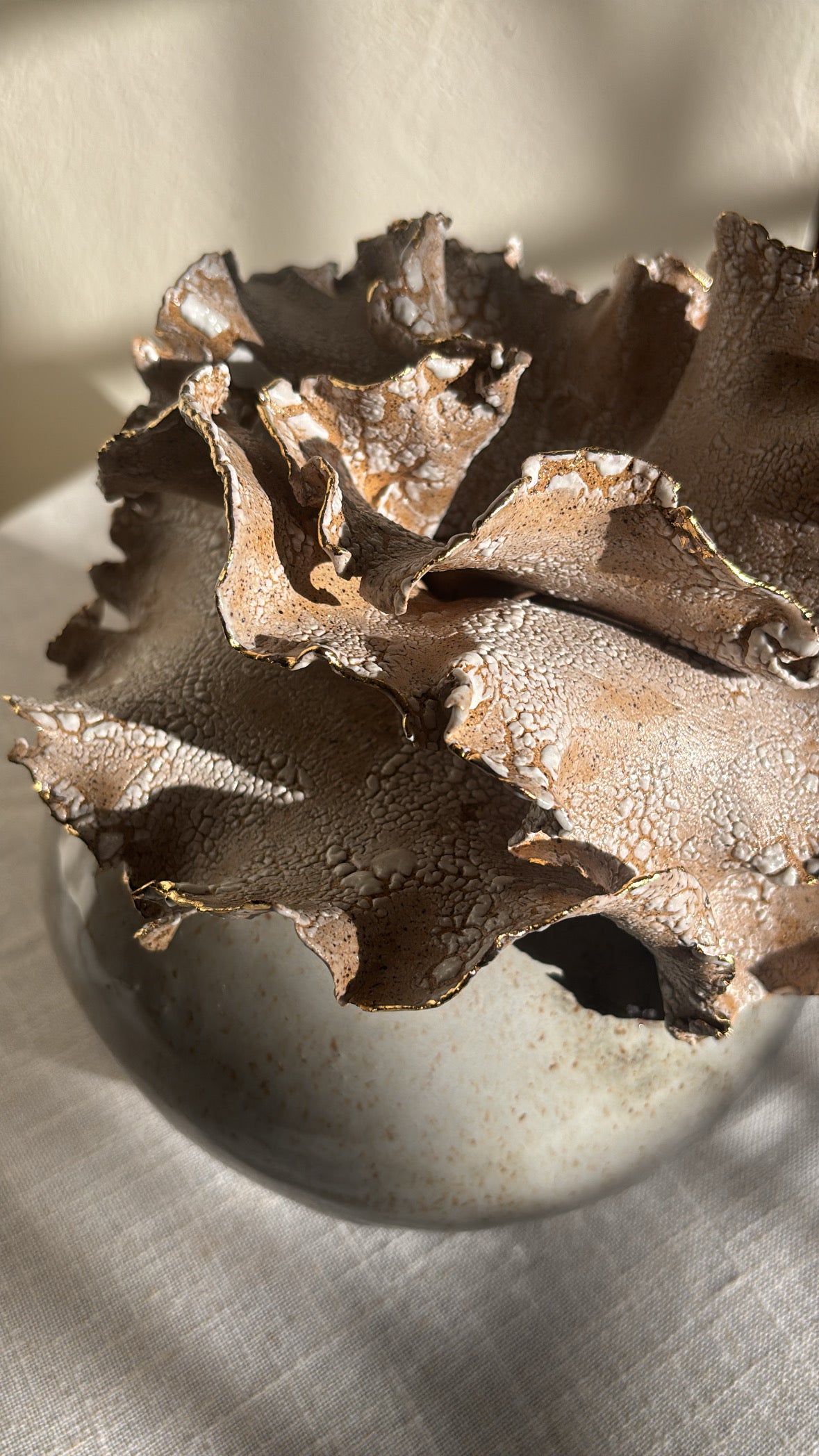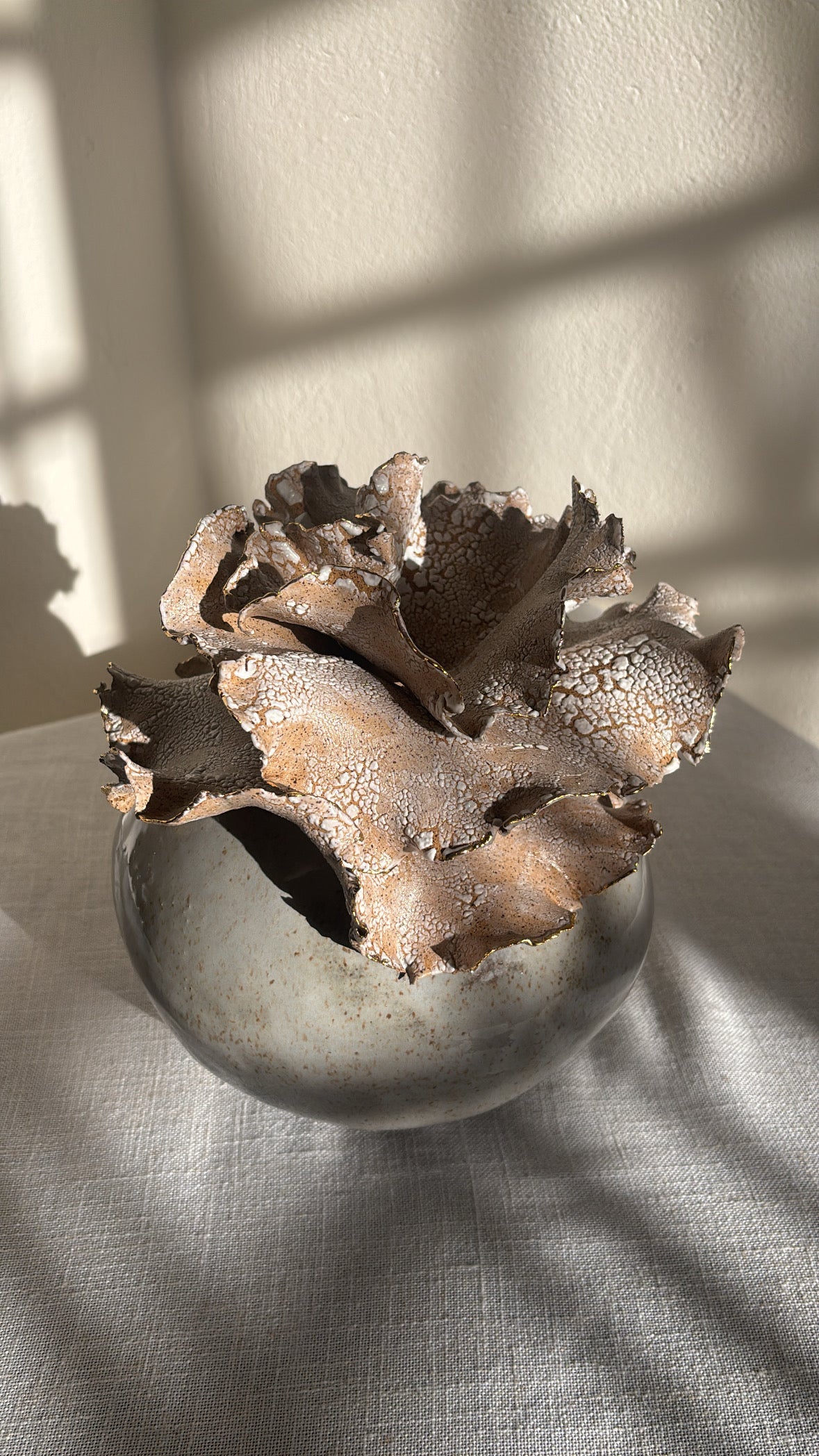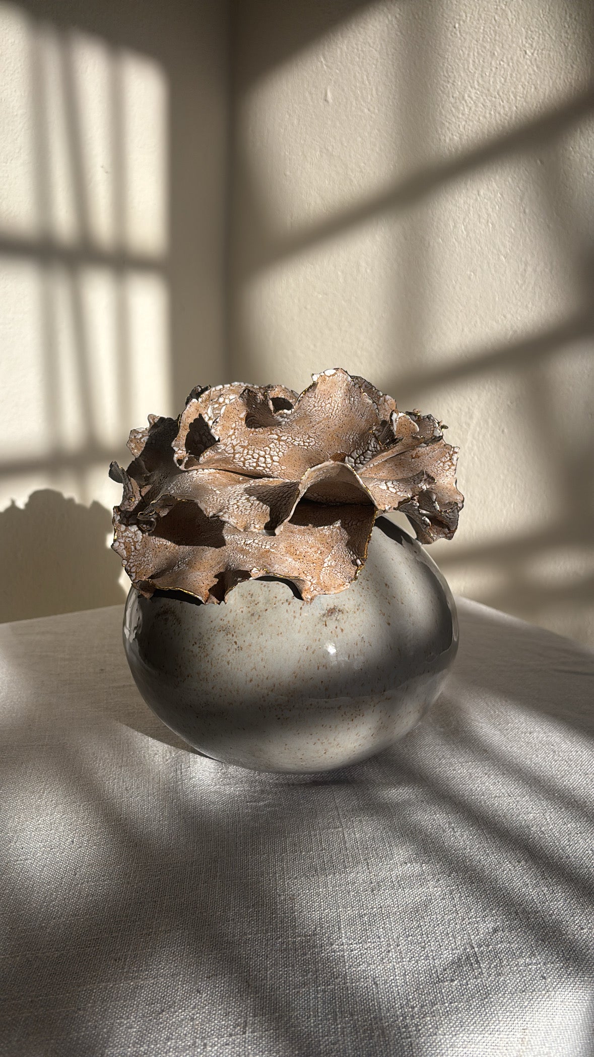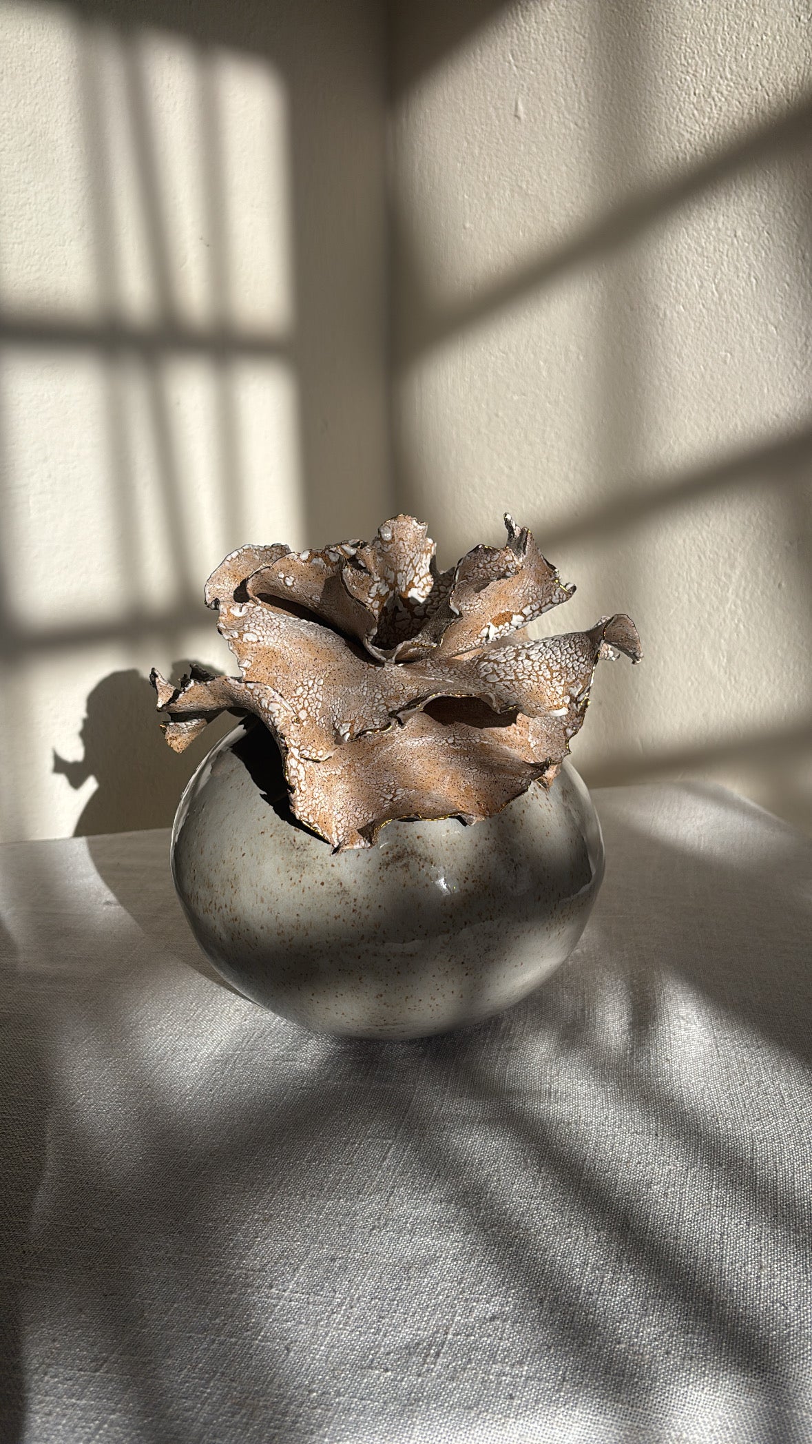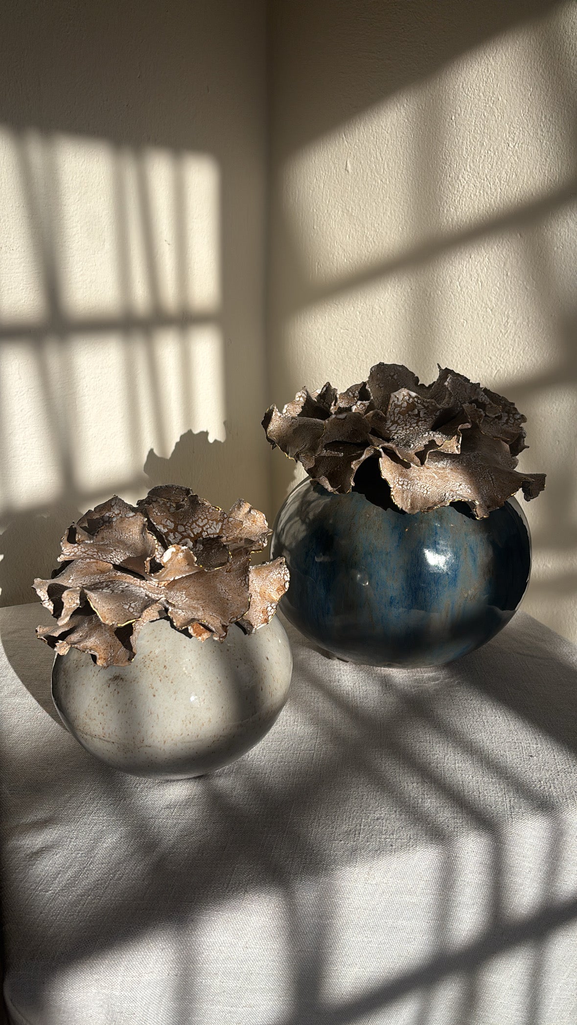 Un Viaje al Cielo is a handcrafted stoneware statement piece inspired by those quiet moments when we lose ourselves gazing at the sky—marveling at its vastness, its blues, its clouds, and its quiet magic. Though we remain grounded, we are gently carried upward, searching for answers in its depth and immensity. From that place, we return lighter, reminded that we are part of something greater, and that everything we seek already lives within us.